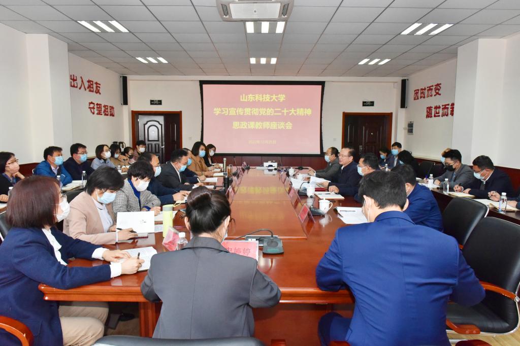 10月25日,学校召开学习宣传贯彻党的二十大精神思政课教师座谈会,党的二十大代表、校党委书记罗公利与马克思主义学院思政课教师面对面座谈,分享参会心得、学习体会,对思政课教师学习贯彻党的二十大精神提出希望要求。