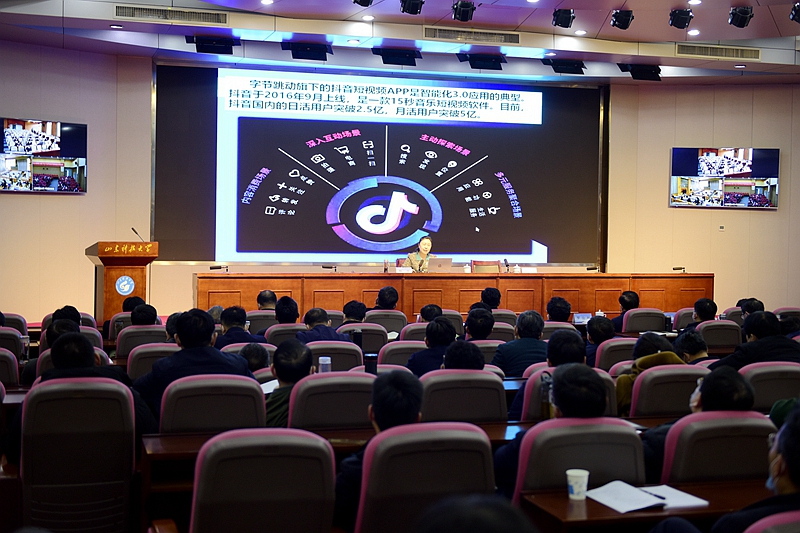 校领导和全体中层干部参加会议,会议为三地视频会议,在青岛校区逸夫讲堂设主会场,泰安、济南校区设视频分会场。(记者:范琪 任波 责编:信永华