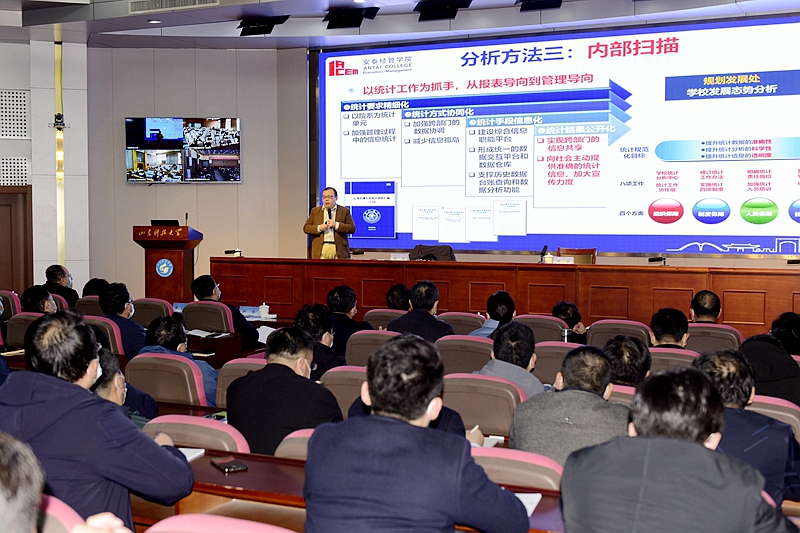26日,上海交通大学安泰经济与管理学院党委书记、国家战略研究院执行院长、心理与行为科学研究院常务副院长杨颉作了题为“顺应变局 破维发展——高校‘十四五’发展规划之浅见”的报告,重点围绕大变局中的“十四五”规划,结合如何合理规划学校战略目标、如何推进学校战略规划落地、院系规划如何与学校规划衔接等方面展开深入讲解与剖析。中共山东省委党校(山东行政学院)经济学教研部主任杨珍作了题为“深入学习贯彻党的十九届五中全会精神开启全面建设社会主义现代化国家新征程”的报告,从十九届五中全会重大意义,全会《建议》的特点原则、基本框架、目标任务和主题主线,决胜全面建成小康社会、为开启新征程奠定坚实基础等方面对党的十九届五中全会精神进行了全面解读。